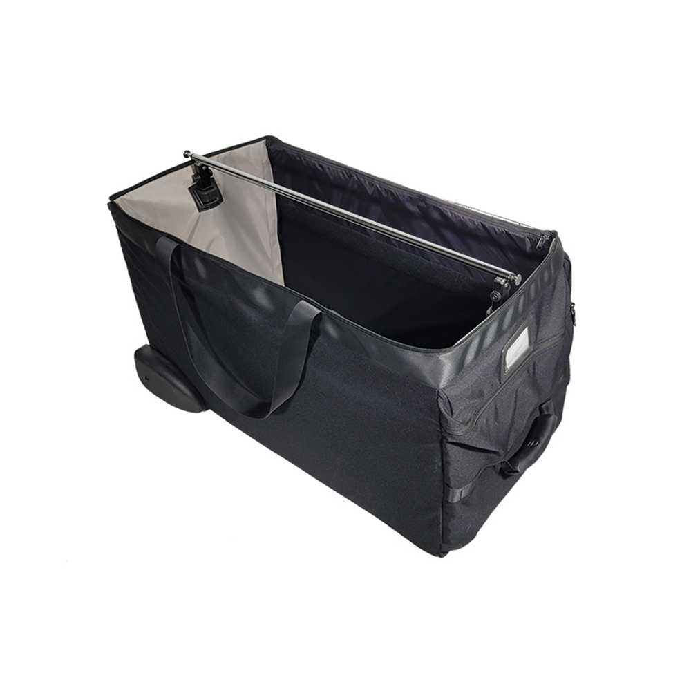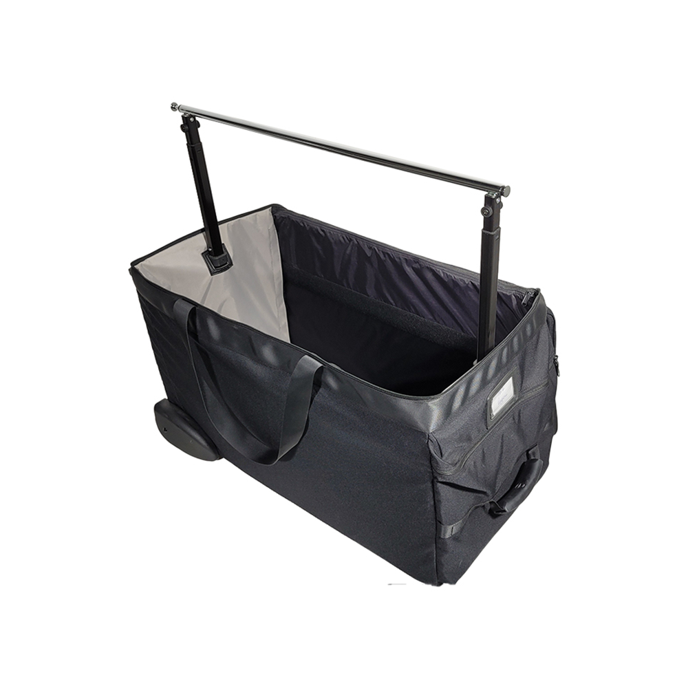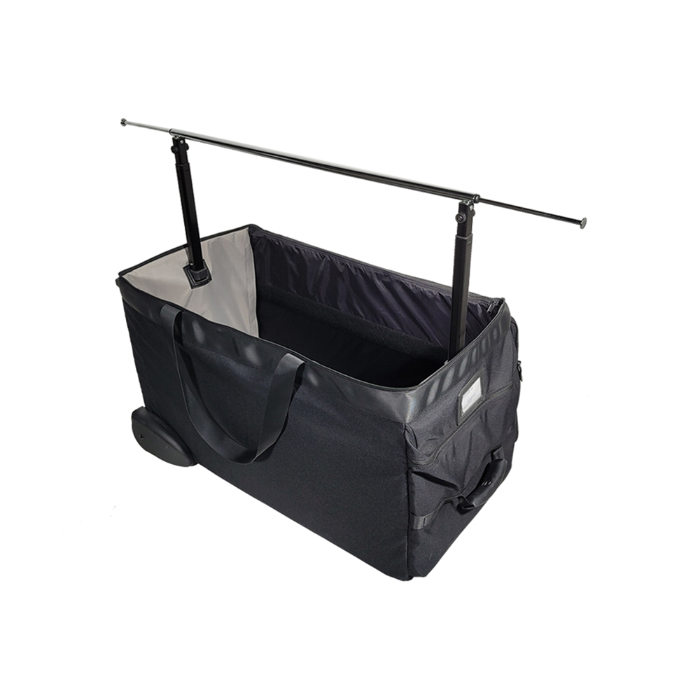 Explore the PRO G.7 Lingerie Bag, specially designed for lingerie and swimwear representatives. Thanks to its telescopic bar, it allows for quick and organized presentation. This bag offers excellent stability with its rigid structure and Ø90 mm wheels, and makes transport easy with its ergonomic telescopic handle. Available in various sizes and customizable upon request, it is the ideal tool to transport and showcase your collections with elegance.